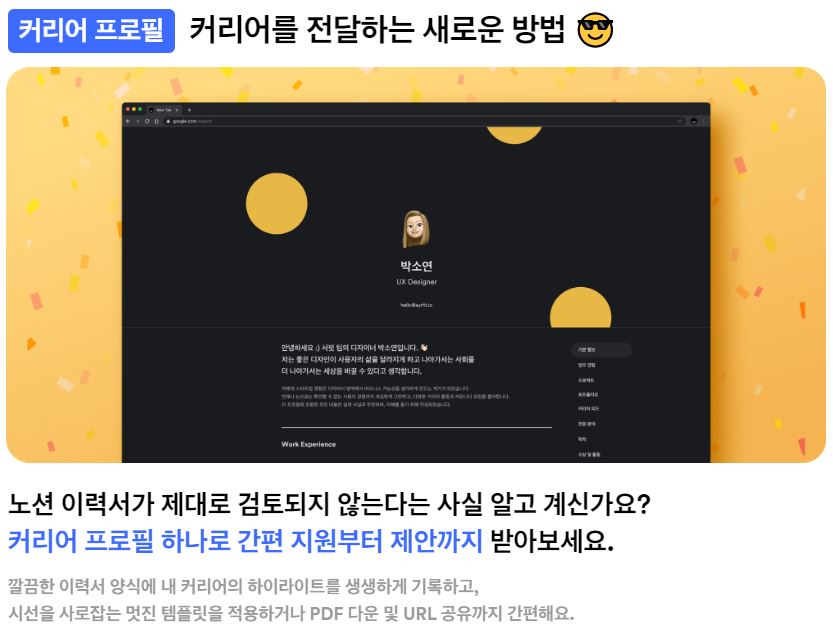 그래서 나도 서핏에서 커리어 프로필을 만들어 보았다.